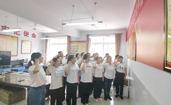 面向党旗交党费。党员面对庄严鲜红的党旗,依次按照党费标准足额缴纳了7月份党费。大家认为,面向党旗交纳党费的“仪式感”进一步强化党员身份意识,今后会更加时刻牢记自己的党员身份,高标准严要求,在工作中争先锋、做表率。