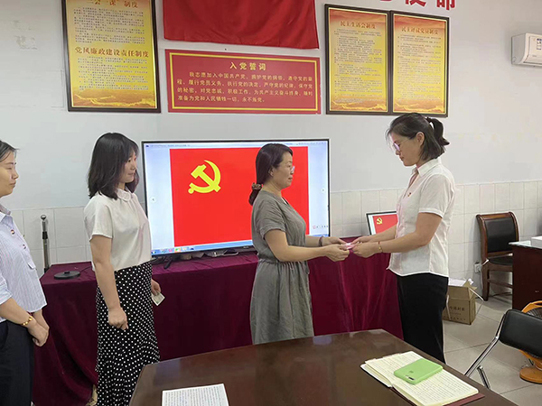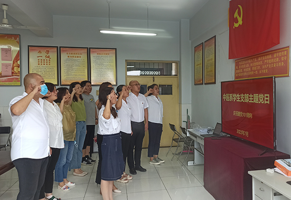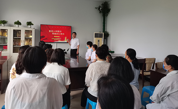 举行入党宣誓仪式。各党支部组织新党员入党宣誓仪式,新党员戴着党徽,面对鲜红的党旗和庄严的誓词,共同高举右拳,庄严宣誓:“我志愿加入中国共产党,………,随时准备为党和人民牺牲一切,永不叛党”,新党员们用铿锵有力的誓言深情表达着对党的无限忠诚、热爱和听党话、跟党走的坚定决心。口腔医学系学生党支部创新开展了线上线下同步入党宣誓仪式,让部分在实习岗位的学生党员通过视频连线的方式参加宣誓仪式。宣誓完毕后,新党员们纷纷表示把初心落在行动上,把使命担在肩膀上,做好本职工作,争当先锋,勇创一流。同时,组织老党员重温入党誓词,老党员们回顾自己入党宣誓的庄严承诺,更加坚定了为党牺牲一切的决心。