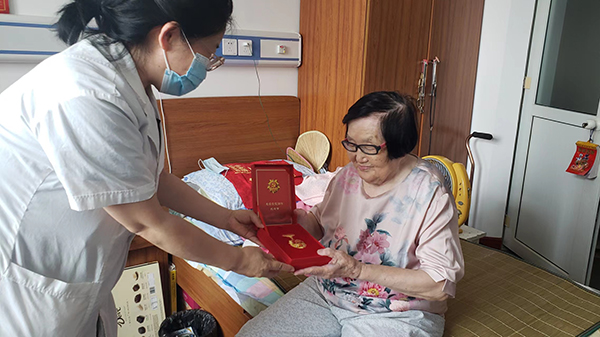 颁发“光荣在党50年”纪念章。第一附属医院党委、机关党总支、老年养护中心党总支举行庄重简朴的仪式,为党龄达到50年的5名老党员颁发“光荣在党50年”纪念章,老党员纷纷表示:“这枚纪念章非常有意义,将激励我们继续发挥余热,积极为党工作、为民服务、为社会做贡献。”