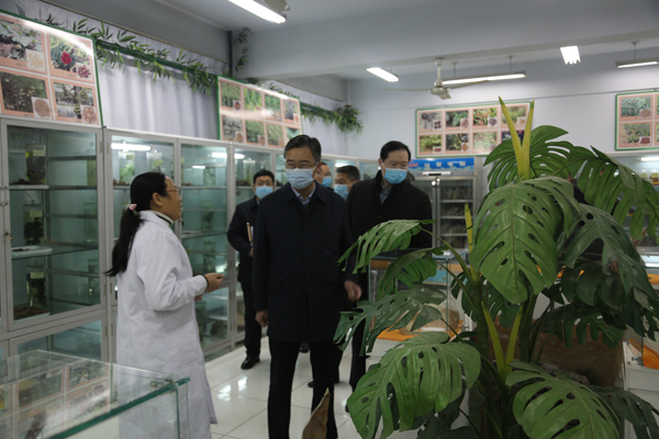 王现坤一行实地参观了基础医学部、数字解剖实验室、医学科研中心、邢台市中医适宜技术推广指导中心等,详细了解学校办学规模、师资力量、实验场所硬件基础设施建设、教学和科研工作开展情况。在层流净化细胞实验室等重点科研场所,王现坤观看了科研人员工作演示,详细询问了实验仪器的工作原理和应用范畴以及实验室为邢台市各医院服务情况。他勉励我校继续发挥特色优势,注重教研指导作用,不断提升教学科研水平。他指出,要突出办学特色,持之以恒加强学科建设,提升科学研究能力,全面营造教育发展的优良环境,努力为社会输送更多高素质高技能的人才。他强调,要深入学习贯彻党的十九届六中全会精神和习近平总书记关于教育工作的重要指示批示精神,牢固树立教育优先发展理念,全力以赴加快教育事业发展,为推动邢台高质量赶超发展提供人才支撑和智力支持。