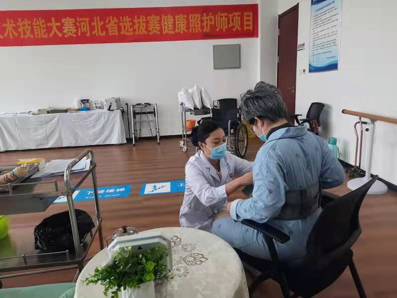 本次赛项设计聚焦“健康照护”主题,设计了家庭和机构两个高仿真场景各四个模块(基础照护、生活照护、康复照护、感染防护)的实操部分。大赛以真实案例为引导,将安全意识、人文关怀、真实沟通等创新性融入大赛,尽量贴近生活,还原工作实际,去表演化、去大赛痕迹。旨在考核健康照护师的基本知识、基本技能功底和分析问题解决问题的能力,引导大赛主流方向,引领健康照护业可持续发展。来自全省技工院校、高职院校及养老机构等单位的10名选手参赛。经过激烈角逐,我校2名参赛教师获得了大赛第一名和第四名的好成绩。获得第一名的贾红力老师将代表河北省参加全国比赛。