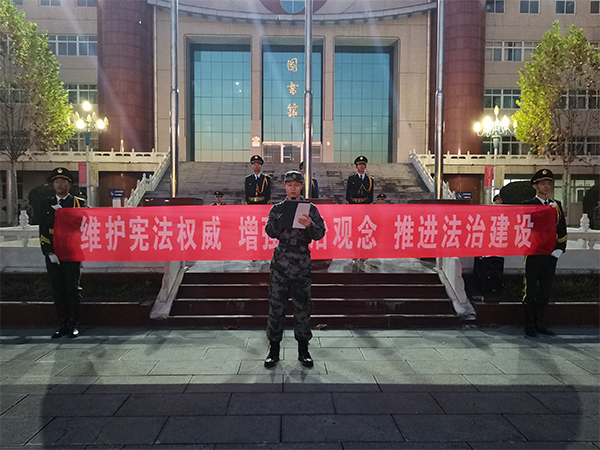 组织160余名学生干部观看了《中国宪法》宣传教育片,深入了解宪法概念、宪法历史,通过生动典型的案例,使大家深刻感受到《宪法》这部国家根本大法,在国家治理中发挥的重要作用。周一升旗仪式期间,开展了宪法知识宣讲活动,并组织参加活动的团学干部在“维护宪法权威,增强法制观念,推进法治建设”条幅上签名,进一步强化了广大青年学子的法治意识和守法理念。