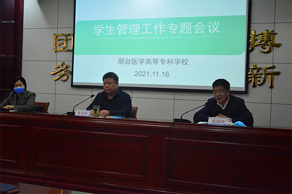 学校党委副书记、校长郑书深在讲话中首先代表校党委对近期的学生工作表示了肯定和理解,随后结合教育部关于辅导员队伍建设的相关要求就做好下一步学生管理工作强调了三个方面:一是提高政治站位,严格落实学校疫情防控的具体责任,紧紧围绕立德树人根本任务,不折不扣执行相关学生管理规定,打造具有邢台医专特色的“三全育人”模式;二是尽心尽力尽责,一定要做好学生舆情引导和身心健康教育,做好学生的沟通、教育、管理和服务工作;三是加强辅导员队伍建设,辅导员要加强学习,提高自身素质,提升工作能力,学生工作处要加强辅导员培训力度,通过思政、心理等方面培训打造优良队伍。