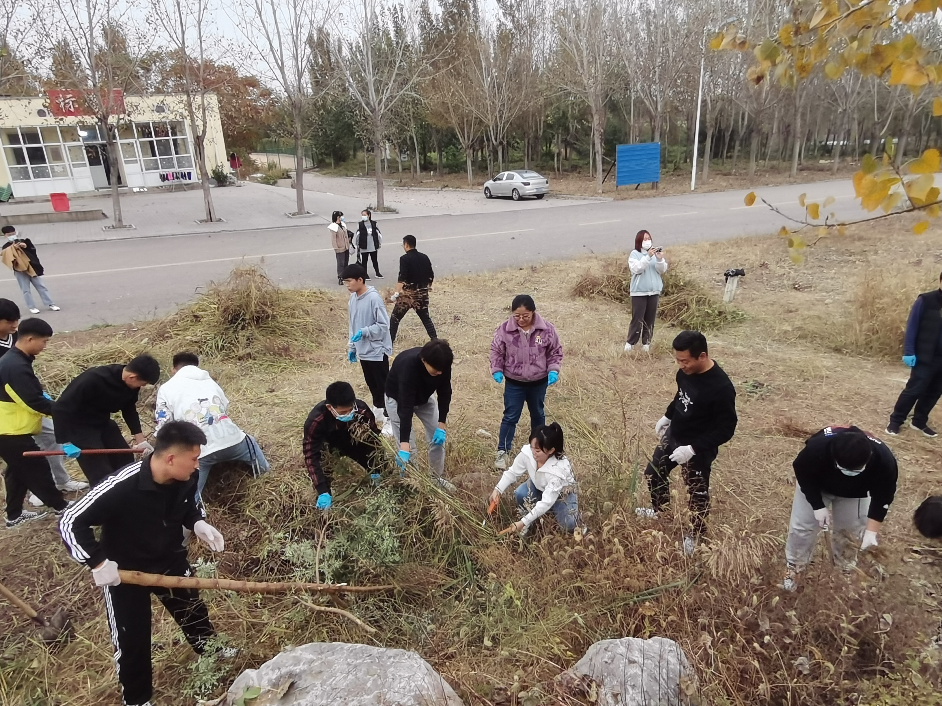 活动期间,每日下午三点半,护理系副主任褚立辉都带领全体辅导员在皇寺校区四号教学楼后清除假山区域的杂草荒枝。大家戴着手套,拿着铁锹、锄头等各种劳动工具热火朝天的开展劳动。健壮的男辅导员将杂草连根拔起,干起活来认真又卖力;温文尔雅的女辅导员也不甘示弱,她们两两合作,一个抓着草的根部,一个利用铁锹将其砍断。路过的同学们也踊跃地参与到“劳动大军”的队伍中,一起锄草、捡荒枝……在深秋阳光的照耀下,大家干劲十足,为校园的良好环境挥洒辛勤的汗水。经过“劳动大军”的集体奋战,校园空地处的杂草、荒枝、砖头等被清理得干干净净。