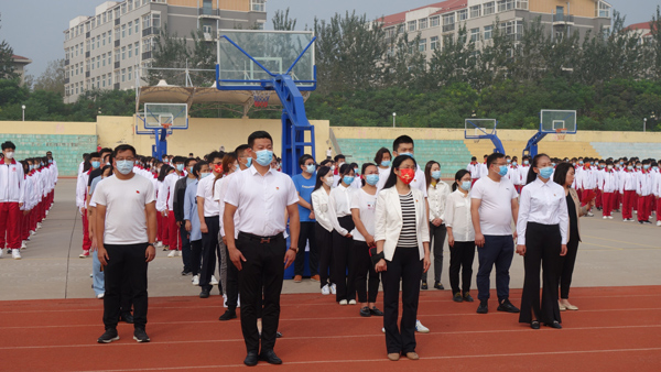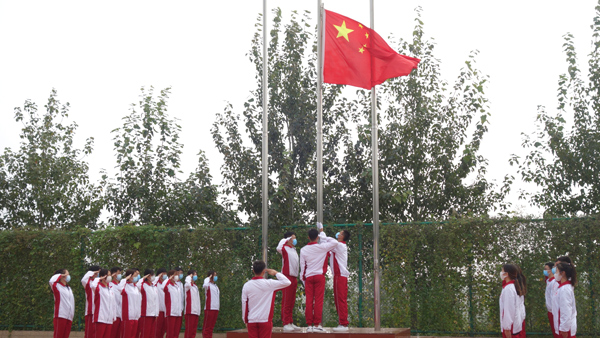 上午8时整,国旗护卫队队员迈着矫健整齐的步伐,护卫着五星红旗走向升旗台。随着雄壮激昂的国歌响起,升旗手振臂一挥,鲜艳的五星红旗迎风招展,冉冉升起。全体师生肃然而立,一同面向国旗行注目礼,向国旗致以最崇高的敬意,向祖国母亲献上最美好的祝福。