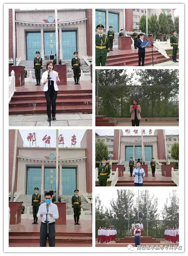 金秋送爽山河美,丹桂飘香庆辉煌。在喜迎中华人民共和国成立72周年之际,10月1日,我校两个校区同时举行了隆重的升旗仪式,祝福伟大祖国生日快乐,进一步引导教育广大青年学生不忘初心、牢记使命,坚定理想信念,厚植爱国情怀,刻苦勤奋学习,为实现中华民族伟大复兴的中国梦而努力奋斗。学生处、团委、各系师生代表参加了升旗仪式。