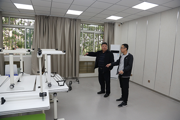 近日,在学校领导的关心指导下,我校新建的两间双屏互动智慧教室正式投入使用。学校党委书记田德荣,党委副书记、校长郑书深,党委委员、副校长林雪霞在建设过程中亲临施工现场检查指导工作,就施工进展、质量控制和安全管理等方面提出了具体指导意见和要求。