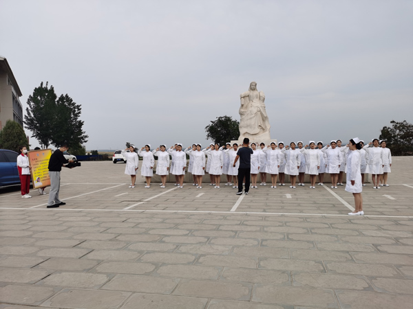 “民族之魂在这里,梦想一代代接力……”,《岁月征程》MV拍摄开展以来,催人奋进的歌词和激情澎湃的旋律一遍遍响彻在校园每个角落,已经成为了众多大学生耳熟能详的流行热曲。拍摄中,在学校图书馆广场、校门口、天使湖畔、校史馆、教室、南丁格尔塑像等众多标志性建筑前,在邢台解放纪念碑、仲毅园等邢台市红色教育基地,学校1000余名参演学生放声高歌,唱响了对党、对祖国真挚的热爱,唱出了青年人的骄傲和自豪。演唱中,同学们高举党旗、国旗,用“党徽形状“、”100”等队列造型来致敬党的百年风华,表达新时代大学生始终“心向党,听党话,跟党走”,传承红色基因,努力将革命薪火代代相传的坚定理想信念。