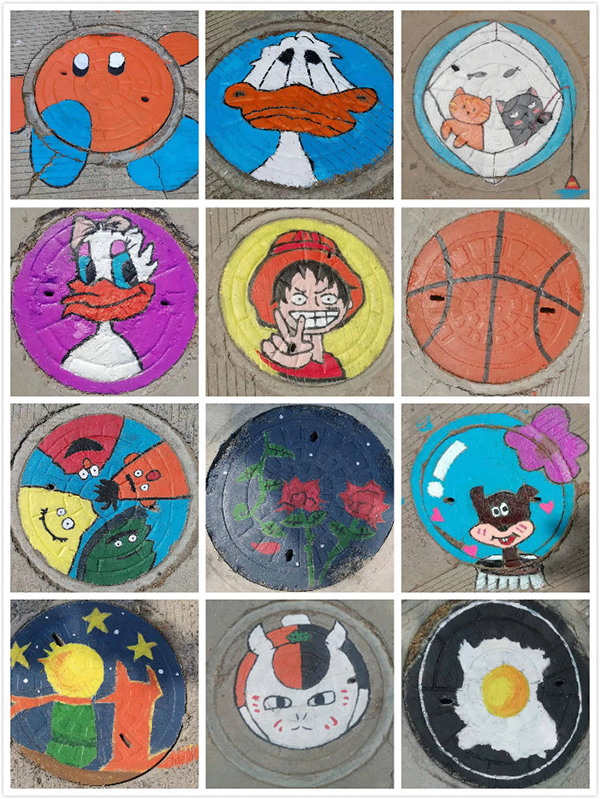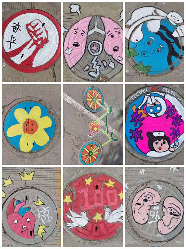 活动发起后,得到了同学们的积极响应,志愿者们在指导老师带领下从设计到选择草图样本,从勾勒图案到调色绘画等各个环节进行细致安排。活动期间,志愿者们冒着酷热,席地而坐,执笔调色,把对校园的热爱之情充分融入到作品当中,用手中的画笔将社会主义核心价值观、环保、医学、青春等主题呈现在井盖上,为一个个朴实无华的井盖披上炫彩多姿的新衣。精彩绚丽的井盖图画引来了众多学生驻足称赞,纷纷拍照留影晒到朋友圈,很多学生说:“萌哒哒‘景盖’,好看到舍不得用脚踩”。