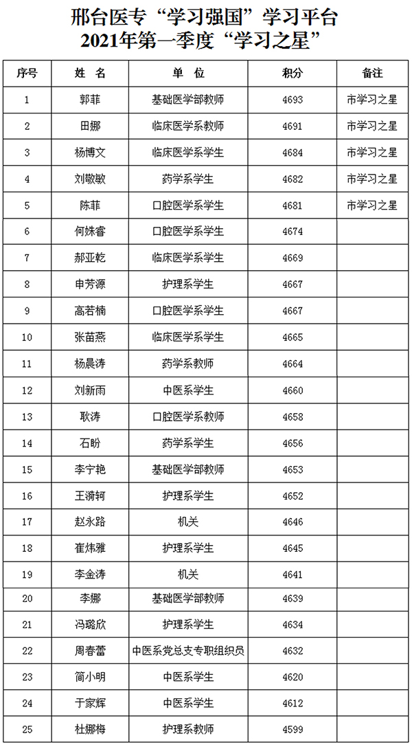铛铛铛,学校第一季度“学习之星”新鲜出炉了,大家快来看都是谁吧,有没有你身边的他。