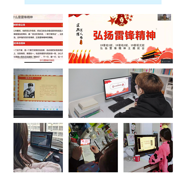 学习榜样,感悟力量。在校团委号召下,全校各级团组织充分利用微信等线上平台,广泛开展了聆听雷锋故事、学唱雷锋歌曲、品读雷锋日记等多种形式的主题团课,并通过交流探讨,使我校学生进一步了解雷锋精神的内涵,感受雷锋精神的光芒,感悟榜样力量、不断提高自身思想道德修养。