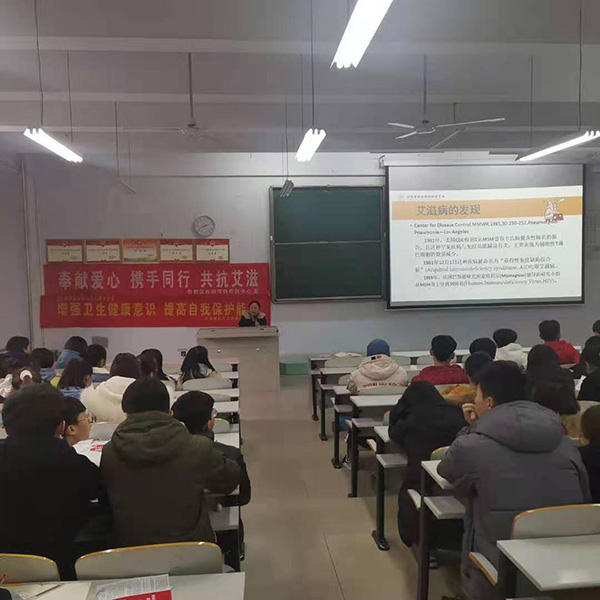 邢台市信都区疾病预防控制中心性病与艾滋病防治科科长郝晓红为同学们作了《艾滋病流行形势与科学防控》的知识讲座,从艾滋病的发现、传播方式、流行现状与趋势、学生艾滋病疫情及艾滋病控制策略与措施等方面进行了详细讲解。