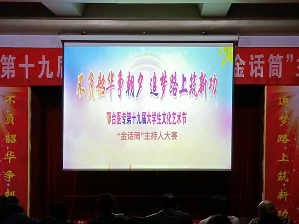 11月24日,我校第十九届“金话筒”主持人大赛在学术报告厅举行,学校团委书记杜庆岩、各系团总支书记以及学生代表300余人参加。