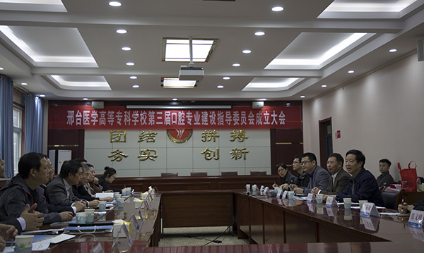 杜成旭副书记在会上致开幕词,他表示,口腔专业建设指导委员会是专业指导和顾问性质的专家机构,对专业改革和建设起着督察和咨询作用,在人才培养方案、专业课程标准的制定、修订、专业的人才培养目标、人才培养规格、课程设置、校企合作办学等方面提出了很多中肯的意见和建议,对专业建设和发展起到了举足轻重的作用。希望各位专家对我校口腔教学进行把脉会诊,为学校口腔专业建设、对邢台的口腔教育教学事业提出建设性的建议和意见。
