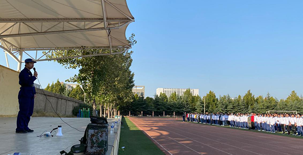在学校田径场,邢台消防救援支队杨迎晓参谋为同学们介绍了身边存在的消防隐患、初期火灾扑救知识、着火后如何有效疏散、火场逃生安全等消防知识,详细讲解了遭遇火灾的自救知识以及正确逃生方法。最后,全体新生来到消防救援车旁,近距离参观并了解各种消防器材和救援装备。