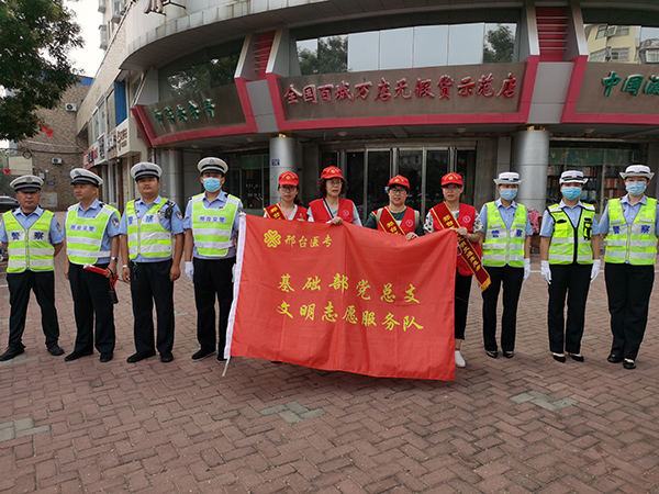 7月22日,七里河新区交警大队长赵项清给学校发来信息,对我校文明交通志愿劝导服务工作予以充分肯定,指出:医专同志们在以前的志愿者服务工作中为我市文明城市的创建做出了很大贡献。7月22日,邢台医专基础医学部在第一党支部书记王晓凌、副书记李娜的组织带领下,早、晚高峰秩序良好,受到了上级有关领导的表扬。在此向今天参加交通管理的8名同志表示感谢!辛苦了!