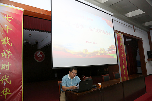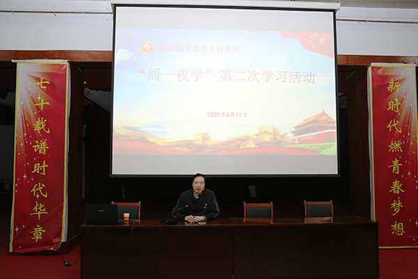 5月11日晚,我校在学术报告厅开展“周一夜学”第二次学习活动。学校党委书记田德荣参加学习并做学习辅导讲话,学校领导郑书深、杜成旭、赵建文及中层正职、机关党员干部共50人参加学习。
