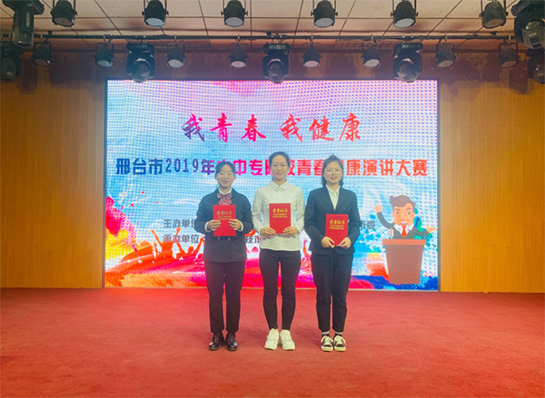 近日,我校组织学生参加邢台市2019年大中专院校“青春健康”演讲大赛荣获优秀组织奖,3名学生均喜获佳绩,其中,19普口2班的胡新雨以《学会对毒品说“不”》荣获二等奖,19普临5班的胡雅晴以《青春之性,切勿轻视》荣获三等奖,19普临5班的张海艳以《性行为与决定》荣获优秀奖。