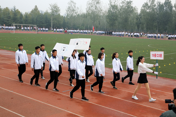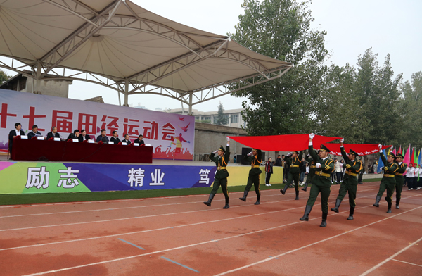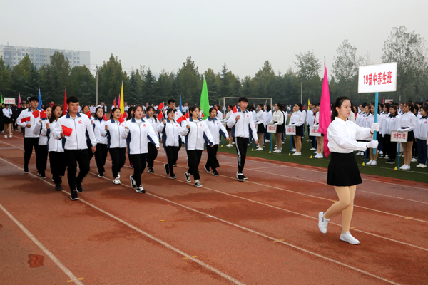 在庄严的升旗仪式之后,党委副书记、校长郑书深致开幕词,指出,秋季运动会是我校落实立德树人根本任务、发展素质教育、推进教育公平、培养德智体美劳全面发展的社会主义建设者和接班人的重要载体,是增强学校凝聚力、丰富校园生活的一项重要举措,对磨炼意志、强健体魄、培养合作意识、增强集体荣誉感等方面具有重要的促进作用。他希望全体运动员要顽强拼搏、遵守规则、服从裁判,争取比赛成绩和精神文明双丰收;全体裁判员要坚持原则,把握标准,客观公正的评判,认真履行裁判员的职责;各班辅导员要做好学生的组织工作,保持良好的大会秩序;全体大会工作人员要增强服务意识,尽职尽责做好后勤保障工作。共同将此次运动会开成文明、热烈、精彩、向上的盛会。2018级普口技班王尘瑜同学、体育教师窦勇分别代表运动员和裁判员庄严宣誓。