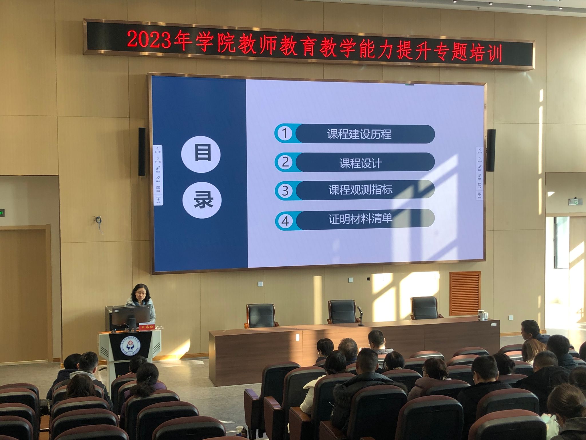 白志峰副主任首先以《精品在线开放课建设经验分享》为题,介绍了我校近几年在课程建设方面取得的成绩,解读了国家精品在线课程评审指标,他结合我校精品在线课的建设案例,详细讲述了如何通过定方向、定团队、做设计、选平台、录视频等步骤开展课程建设,及如何应用和推广。随后,我校国家级精品在线课程《基本公共卫生服务实务》负责人王永红副教授以《职业教育在线精品课程建设心得体会》为题,从“个人获得荣誉,学校取得发展”的意义引入,明确了职业院校建设在线精品课程的重要性和必要性,并以自己从参与建设到主持课程,直至获得国家级精品在线课程的经历为例,讲解了课程建设历程、课程目标定位、课程结构及内容、课程上线流程。