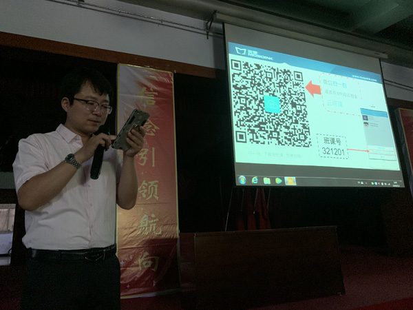 为提高我校教师信息化教学能力,进一步推进移动教学及大数据常态化管理,7月3日上午,学校教务处在学术报告厅举办了“蓝墨云班课操作使用”专题培训会,邀请北京智启蓝墨信息技术有限公司河北区负责人史佳博老师为大家分享了使用经验,100余名教师到场参加培训。培训会由教务处副处长卫茹主持。