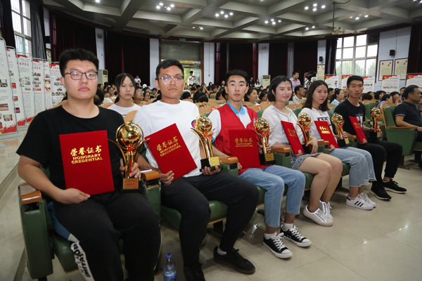 为号召青年学生进一步培养锻造自身道德品格,树立与中国梦同心同向的理想信念,6月13日下午,我校第九届“校园之星”颁奖典礼在学术报告厅隆重举行。学校领导田德荣、郑书深、李建广、李朝鹏、张志强、赵建文出席活动并为十大校园之星颁奖。各系部党总支书记、副书记,团总支书记,全体学管人员和学生代表300余人参加了颁奖典礼。