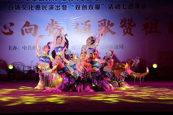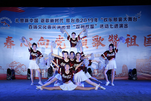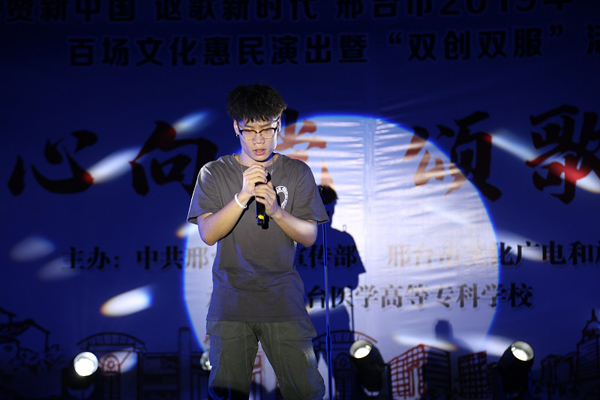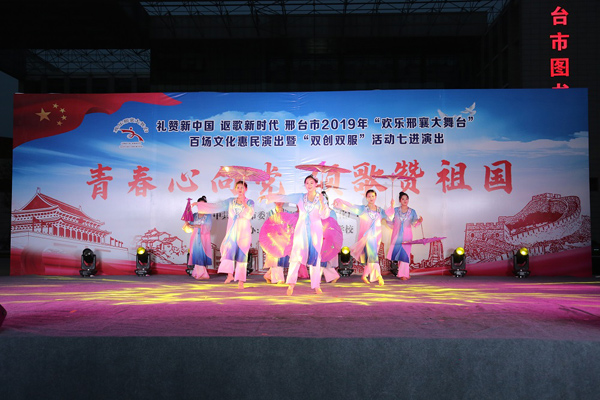 5月17日晚,由中共邢台市委宣传部、邢台市文化广电和旅游局主办,我校承办的邢台市2019年“欢乐邢襄大舞台”百场文化惠民演出暨“双创双服”活动七进演出在邢台市图书馆前举行,2000余名市民到场观看。