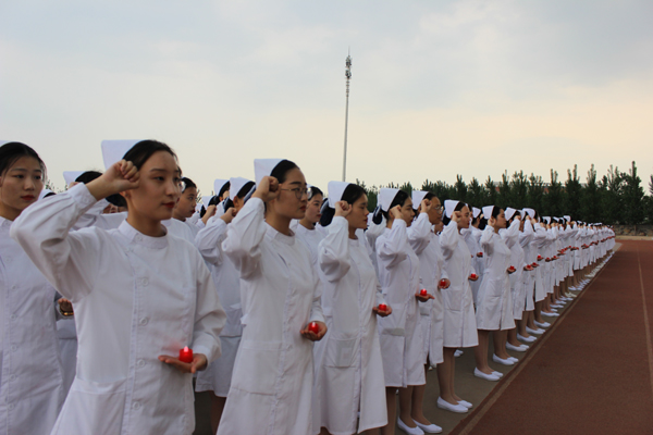 首先,2017级普护16班王亚冰同学代表2017级全体同学表达了对护理事业的热忱以及传承护理事业、将毕生精力奉献给护理事业的坚强决心。教师代表马金梅阐述了南丁格尔精神对培养学生良好职业道德和爱岗敬业精神非凡意义,希望全体同学不忘初心、心怀感恩,用实际行动践行南丁格尔誓言。随后,伴随着庄严、神圣的乐曲,学校领导和办公室、学生工作处、教务处及护理系领导庄重而又深情地为104名2017级护理专业学生代表戴上圣洁的燕尾帽。全场1800余名护理专业学生手托红烛,在南丁格尔画像前庄严宣誓,“以救死扶伤,防病治病为己任,以自己的真心、爱心、责任心对待我所护理的每一位病人……”整齐而响亮的声音回荡操场,为护理事业奉献终生的信念铭刻在每一位同学的心中。