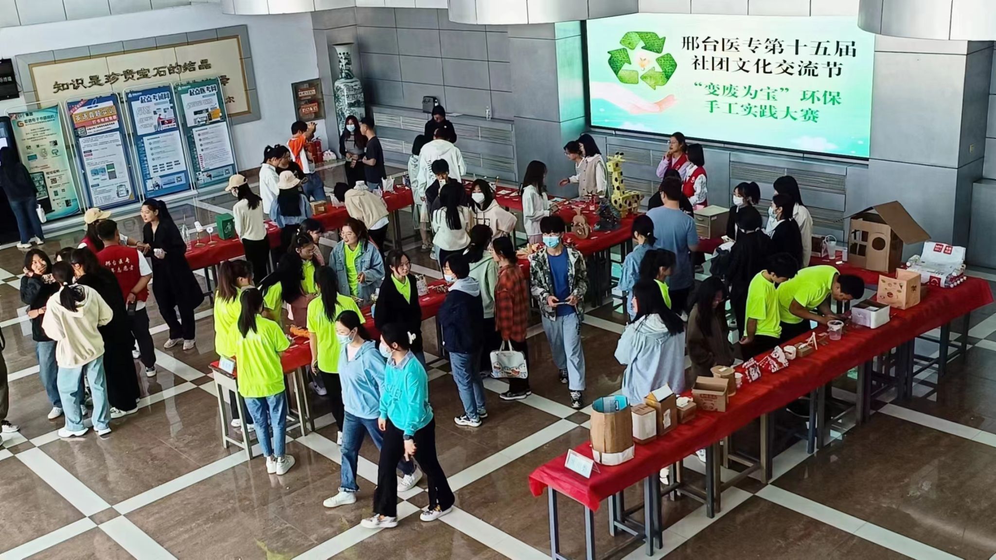 近日,我校青年志愿者协会举办了以“变废为宝”为主题的环保手工实践比赛,共收集手工作品102件。4月16日,比赛作品在图书馆大厅进行了展示,其中,饮料瓶制作的笔筒和花瓶、废纸盒制作的储物箱和垃圾桶……各种废弃物品经同学们“魔术之手”变得光彩熠熠、焕然一新,活动获得了众多同学的围观点赞。