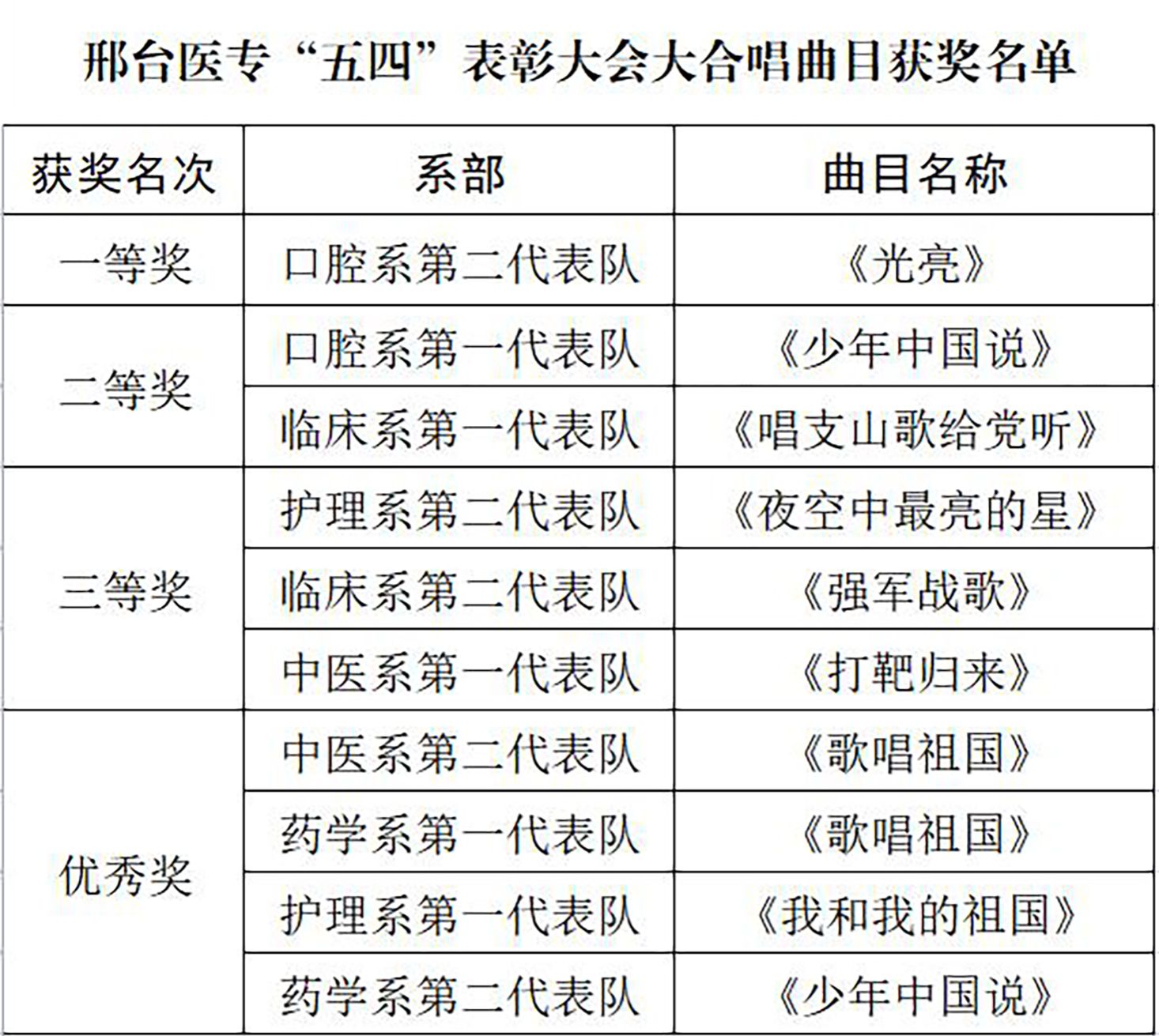 此次合唱比赛,进一步弘扬了“五四”精神,激发了学生爱党爱国热情,营造了积极向上的文化氛围,展现了我校青年学子朝气蓬勃、昂扬向上的精神风貌。
