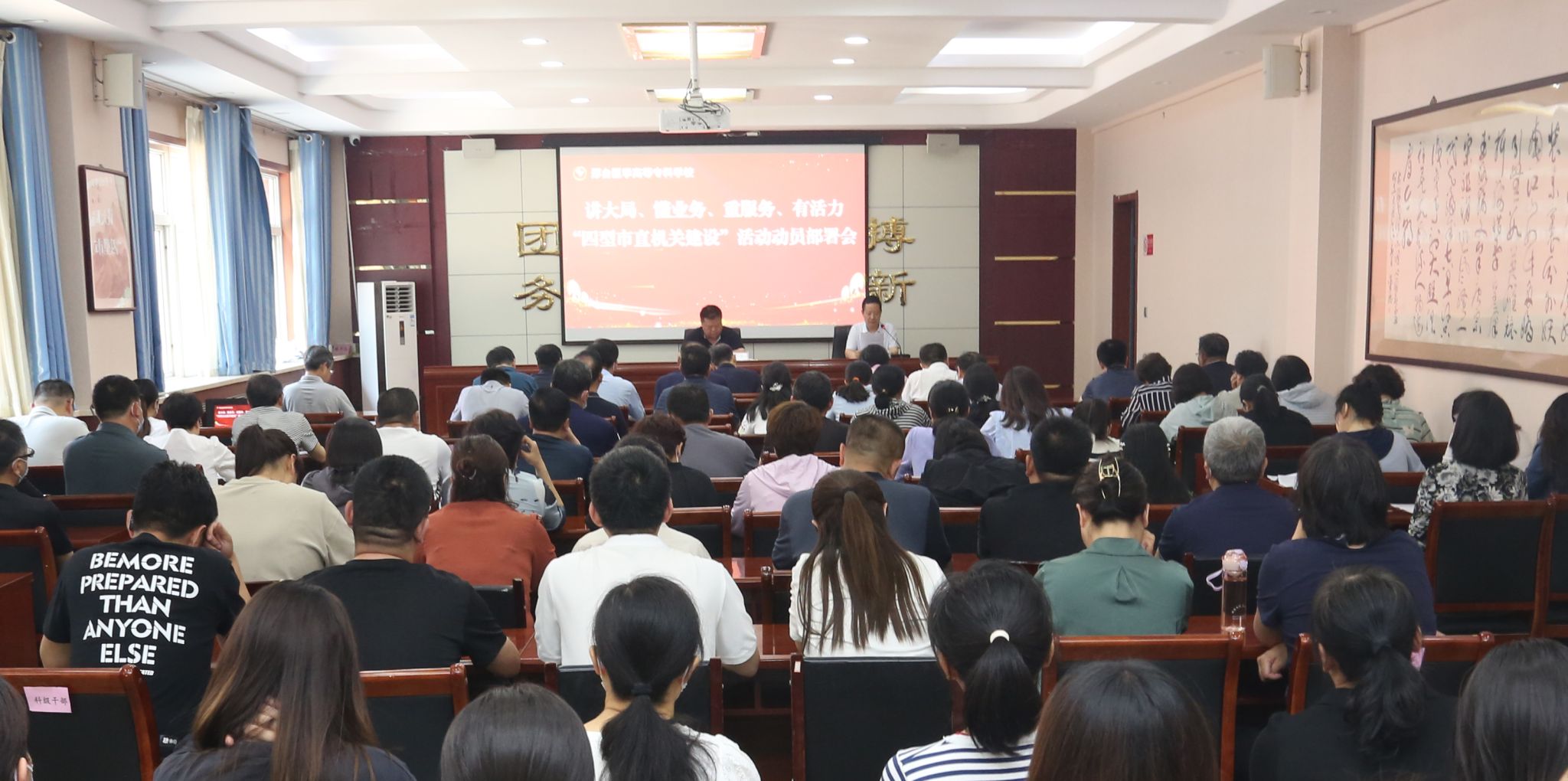 5月16日下午,我校召开讲大局、懂业务、重服务、有活力“四型市直机关建设”活动动员部署会,党委副书记、校长郑书深作动员讲话,党委副书记杜成旭主持会议,学校副科级以上干部、系部教研室主任、辅导员及处室教工代表参加。