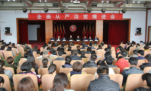 4月11日下午,我校在学术报告厅召开全面从严治党推进会,传达近期中央、省、市关于全面从严治党的新要求,分析当前全面从严治党的新形势、新任务,安排部署学校2019年度全面从严治党工作,学校全体教职工党员及第一、第二附属医院领导班子成员240多人参加。