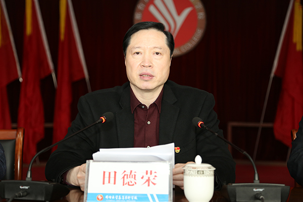 田德荣书记强调,2019年是新中国成立70周年,是深入贯彻落实全国全省教育大会精神的开局之年,是支部建设年、狠抓落实年,也是筹备和召开我校第二次党代会,凝心聚力、共谋学校发展大计的重要一年。加强全面从严治党工作,责任重大、意义深远。一是要坚持把政治建设摆在首位,坚决维护以习近平同志为核心的党中央权威和集中统一领导,严明政治纪律和政治规矩,严肃党内政治生活,营造风清气正政治生态。二是要坚持把思想建设作为引领,持续掀起学习贯彻热潮,深入推进新思想进教材、进课堂、进头脑,自觉用习近平新时代中国特色社会主义思想和党的十九大精神武装头脑、指导实践、推动工作。三是要坚持党管干部原则,严格执行《党政领导干部选拔任用工作条例》,推进中层干部轮岗交流和挂职锻炼,健全干部教育培训体系和考核机制,建设忠诚干净担当、高素质专业化干部队伍。四是要坚持把组织建设作为基础,大力加强和改进基层党建工作,实施“党支部质量提升工程”,严格落实组织生活各项制度,选优配强党支部书记,教师党支部书记“双带头人”比例今年要达到80%以上。五是要坚持把作风建设作为有力抓手,深化纠正“四风”和作风纪律专项整治,一以贯之落实中央八项规定和实施细则,坚决纠正和查处教师失德、失范行为,切实转作风树新风。六是要强化对党员干部纪律约束,切实履行全面从严治党党委主体责任、纪委监督责任、领导班子成员“一岗双责”,深化运用监督执纪“四种形态”,坚定不移地惩治损害师生利益的不正之风和腐败问题。