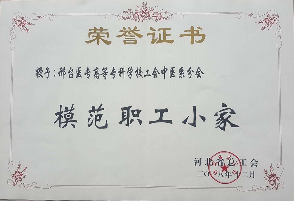 近日,校工会中医系分会被河北省总工会授予“模范职工小家”称号。
