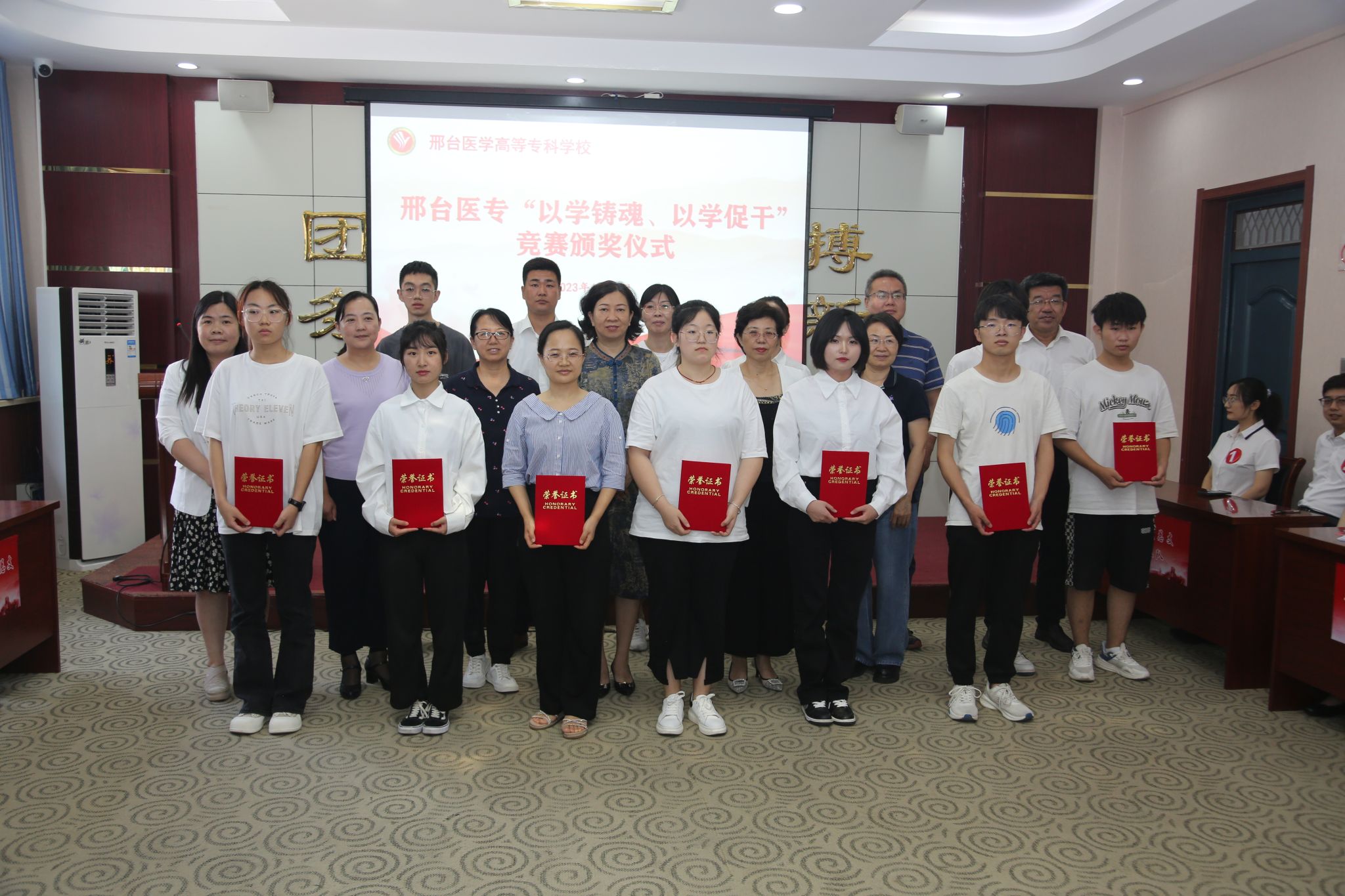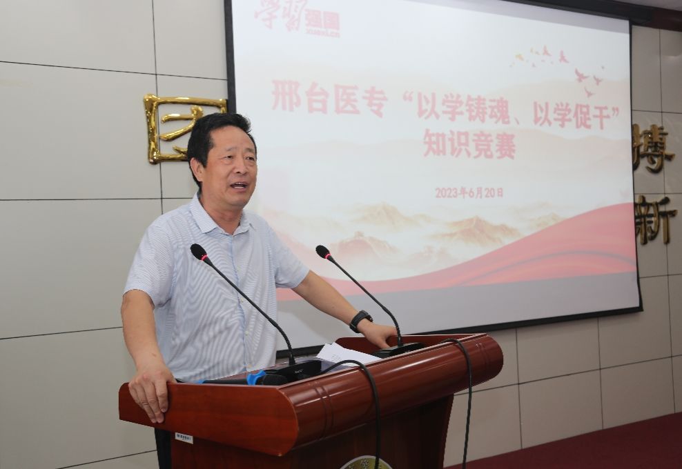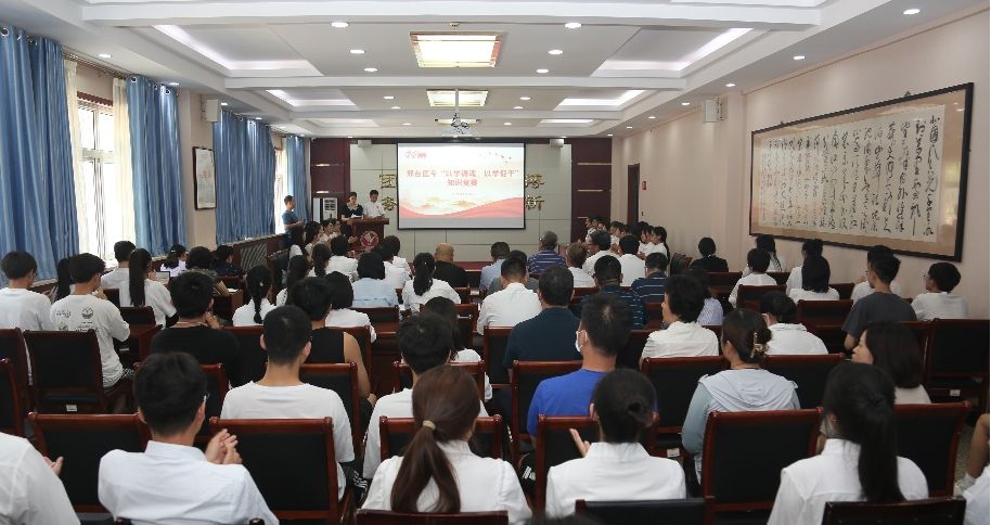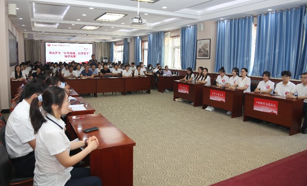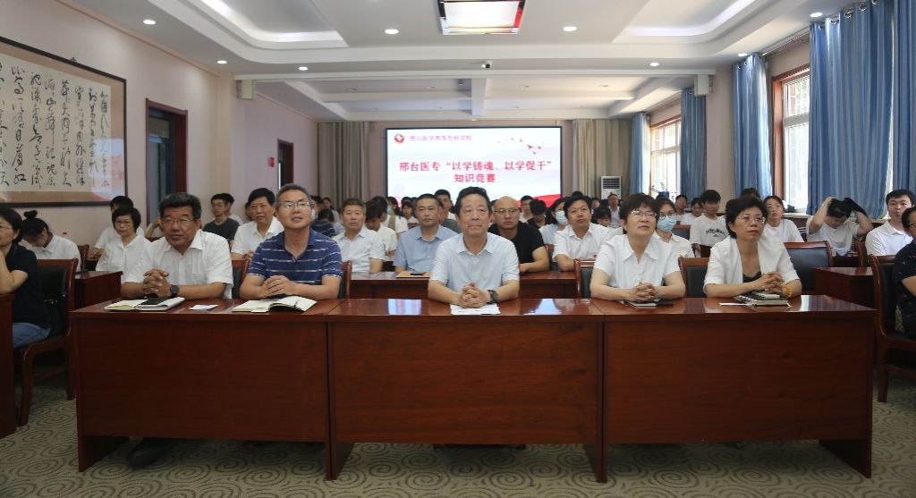 为进一步深入学习贯彻习近平新时代中国特色社会主义思想和党的二十大精神,加强“学习强国”学习平台推广使用工作,营造浓厚的比学赶超氛围,激发全体师生干事创业活力,为学校建院升本做出贡献,6月20日下午,学校举行了“以学铸魂、以学促干”知识竞赛,学校党委副书记杜成旭,党委委员、组织宣传统战部部长张永格,各党总支负责人,学习强国“学习达人”、“月度学习之星”代表和师生代表共120余人参加。