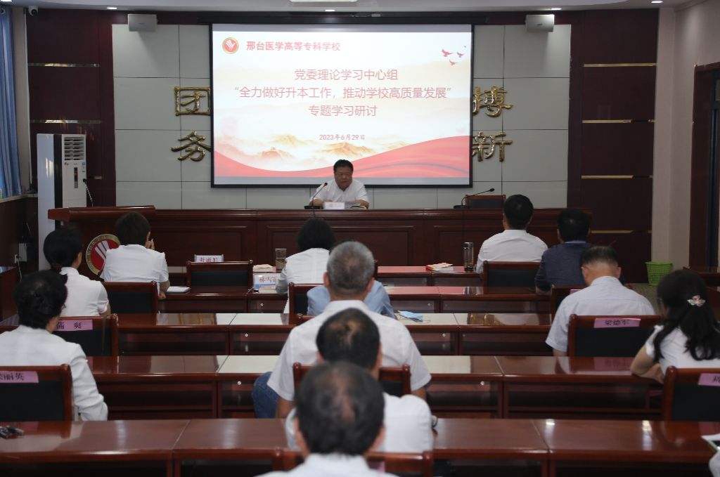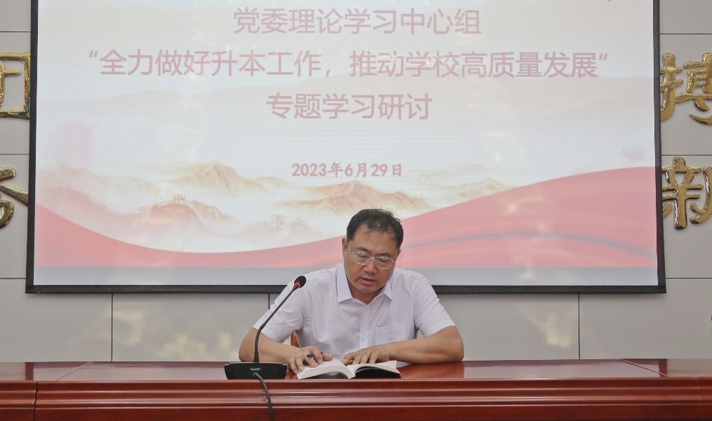 6月29日下午,学校召开党委理论学习中心组(扩大)会议,深入学习《办好人民满意的教育》,围绕“全力做好升本工作,推动学校高质量发展”主题进行研讨交流。党委副书记、校长郑书深主持会议并作总结讲话,领导班子成员及处级中层正职干部参加。