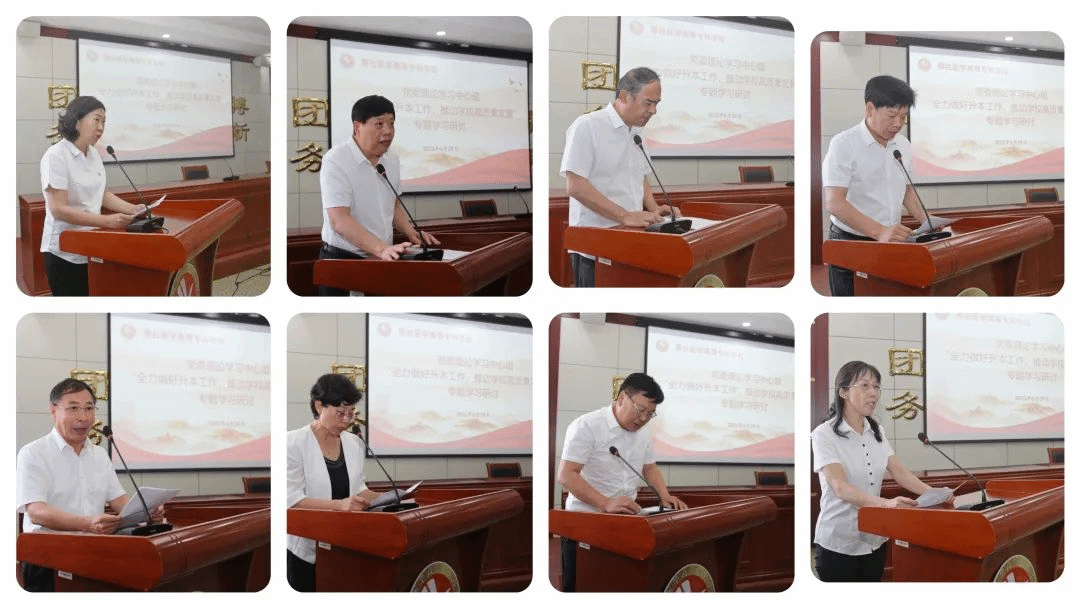 会上,党委委员、纪委书记赵建文领学了《办好人民满意的教育》。领导班子成员,学生工作处处长孙海燕、教务处处长杨福江、发展规划处处长侯万庆以及5个升本专业所在系的负责人分别发言,谈如何提高对升本工作的认识、对本科教育教学工作的认识;谈如何转变理念,适应专升本后教育教学、管理服务等工作带来的新变化、新挑战;谈建院升本后如何在制度建设、内涵建设等方面开拓思路、创新举措,进一步培育凝练鲜明的办学特色。大家畅所欲言,积极为建院升本,推动学校高质量发展建言献策。