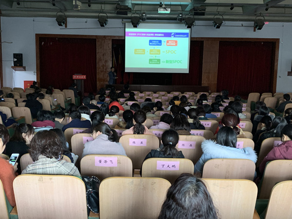 培训中,王晓平总监基于清华大学智慧教学改革的模式,围绕清华大学智慧教学改革的探索与实践、如何快速开展国家级精品课线下7000门课程的建设、“雨课堂”成就课堂教学改造家三个主题,为大家做了一场别开生面、新颖灵活的信息化培训讲座。整场培训,王晓平总监利用先进的“雨课堂”教学手段,将“雨课堂”程序与手机微信巧妙结合,实现现场PPT同步传送到每位教师的手机,及时发送题目,随机点名,让教师积极参与其中,现场互动良好,教学效果显著,得到了全场教师的肯定。讲座后,教师们就“雨课堂”教学的使用方法、实施效果等方面与王总监进行了交流讨论。大家纷纷表示,此次信息化培训在不改变传统教学习惯的基础上,充分利用现有的教学资源结合“雨课堂”信息手段,以学生喜闻乐见的方式,调动学生的学习积极性,达到了“简单、高效、不折腾”的教学目的。