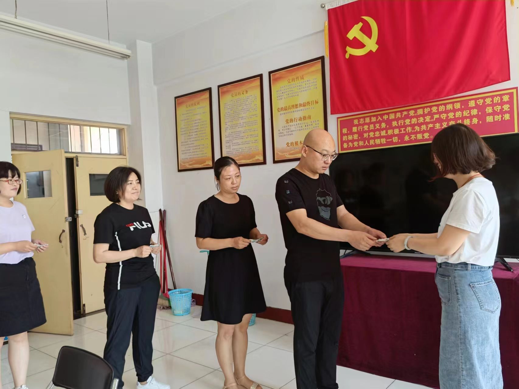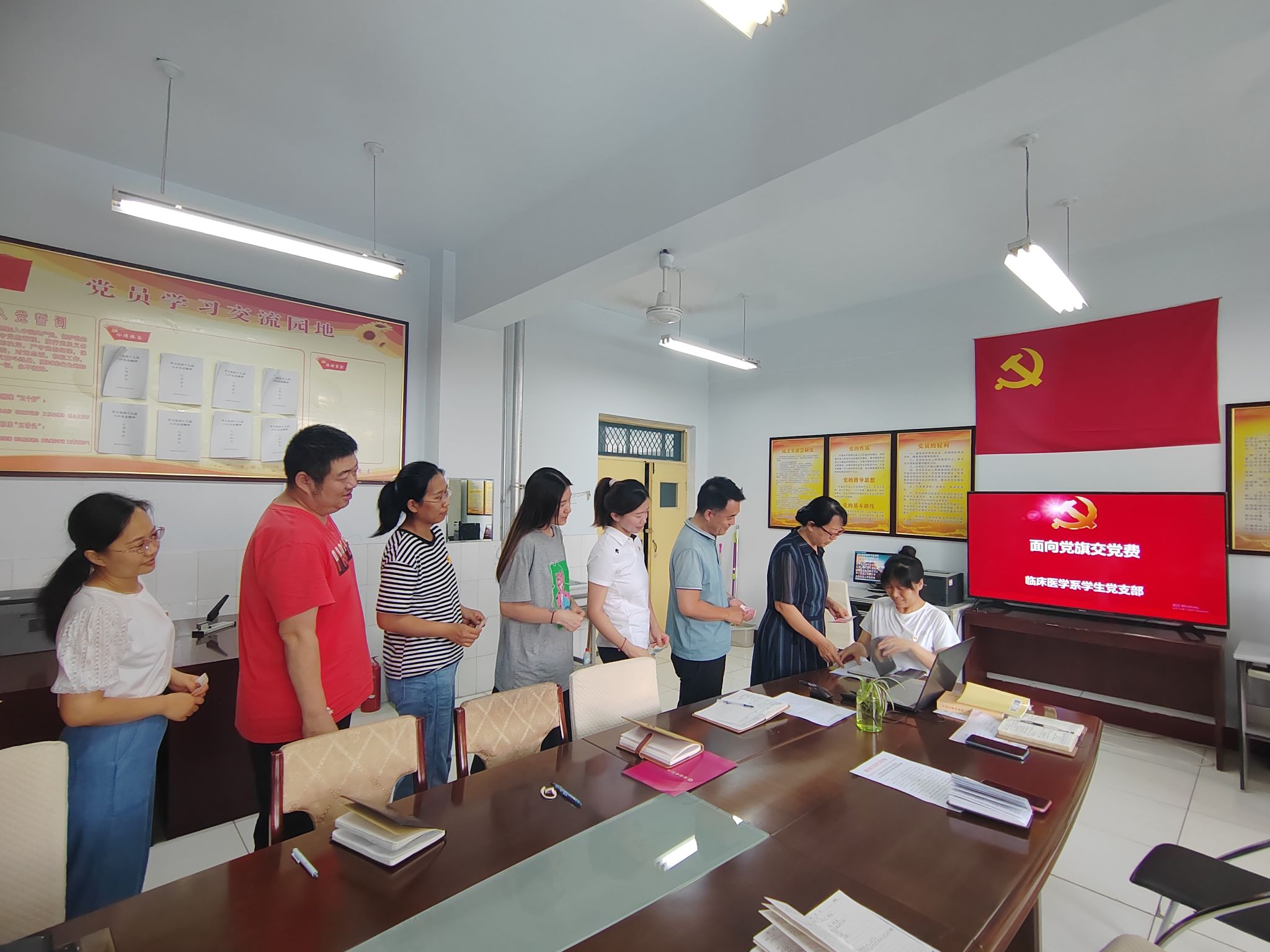 面向党旗交纳党费活动。各党支部组织党员面对庄严鲜红的党旗,依次按照标准足额交纳了7月份党费。党员们表示面向党旗交党费是一堂生动鲜活的党课,在党旗的引领下,我们要不忘初心、牢记使命,更加时刻牢记自己的党员身份,高标准、严要求,争先锋、做表率,以满腔的工作热情和饱满的精神状态全身心投入到工作中去。