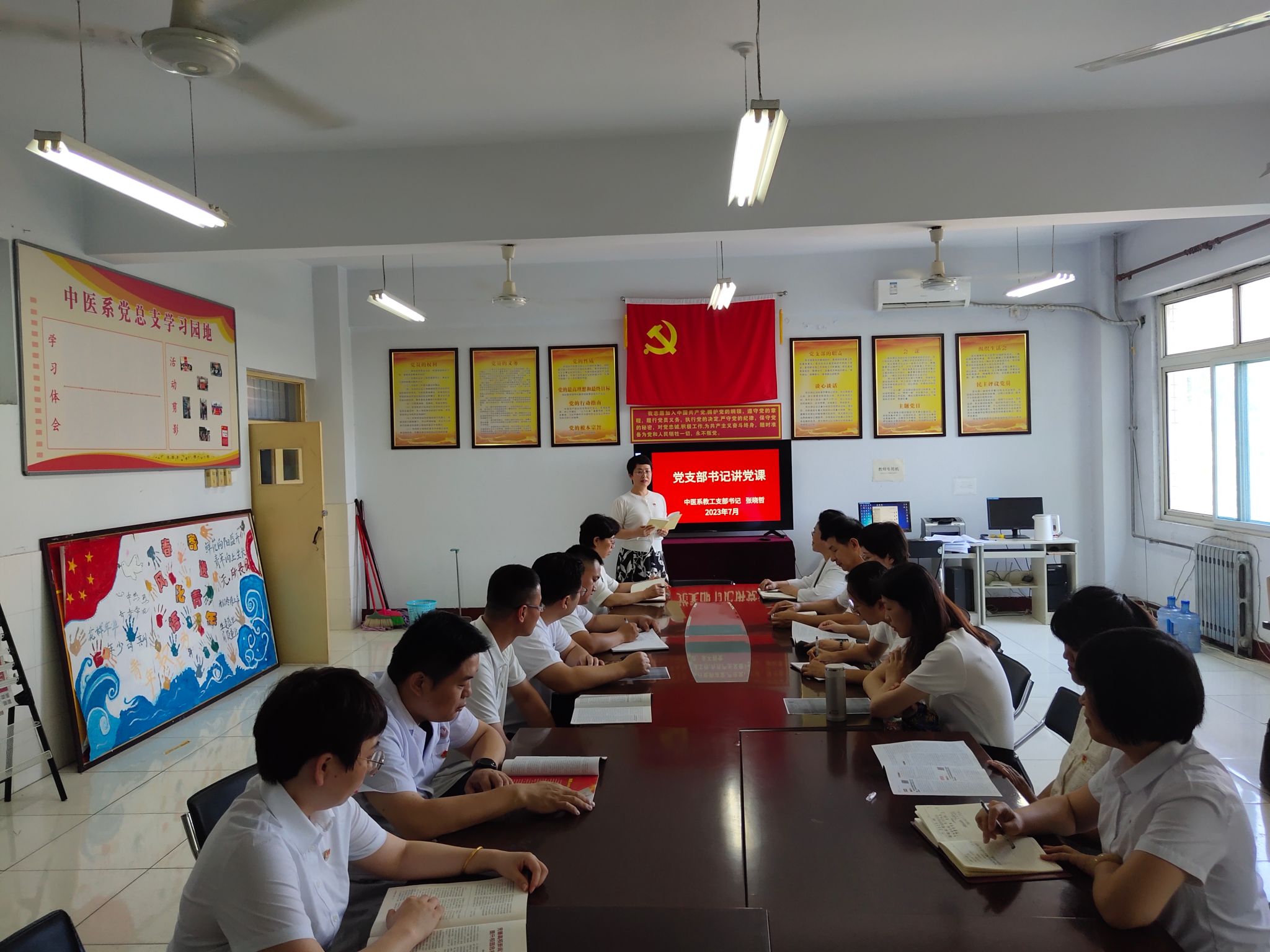 书记讲党课活动。各党总支书记、党支部书记围绕学习贯彻习近平新时代中国特色社会主义思想和党的二十大精神,特别是习近平总书记在河北考察时的重要讲话和重要指示精神讲了专题党课,临床医学系学生党支部书记刘庆文以《学习新思想、建功新时代》为题讲了党课,要求全体党员认真读原著、学原文、悟原理,更加自觉地用以武装头脑、指导实践、推动工作,以更强的历史责任感和使命感,立足岗位、奋发工作。中医系教工党支部书记张晓哲以《弘扬传统文化,落实立德树人》为题上了党课,要求全体党员要传承红色基因、赓续红色血脉,坚守师者初心,牢记育人使命,立足岗位讲奉献,发挥党员的先锋模范作用。