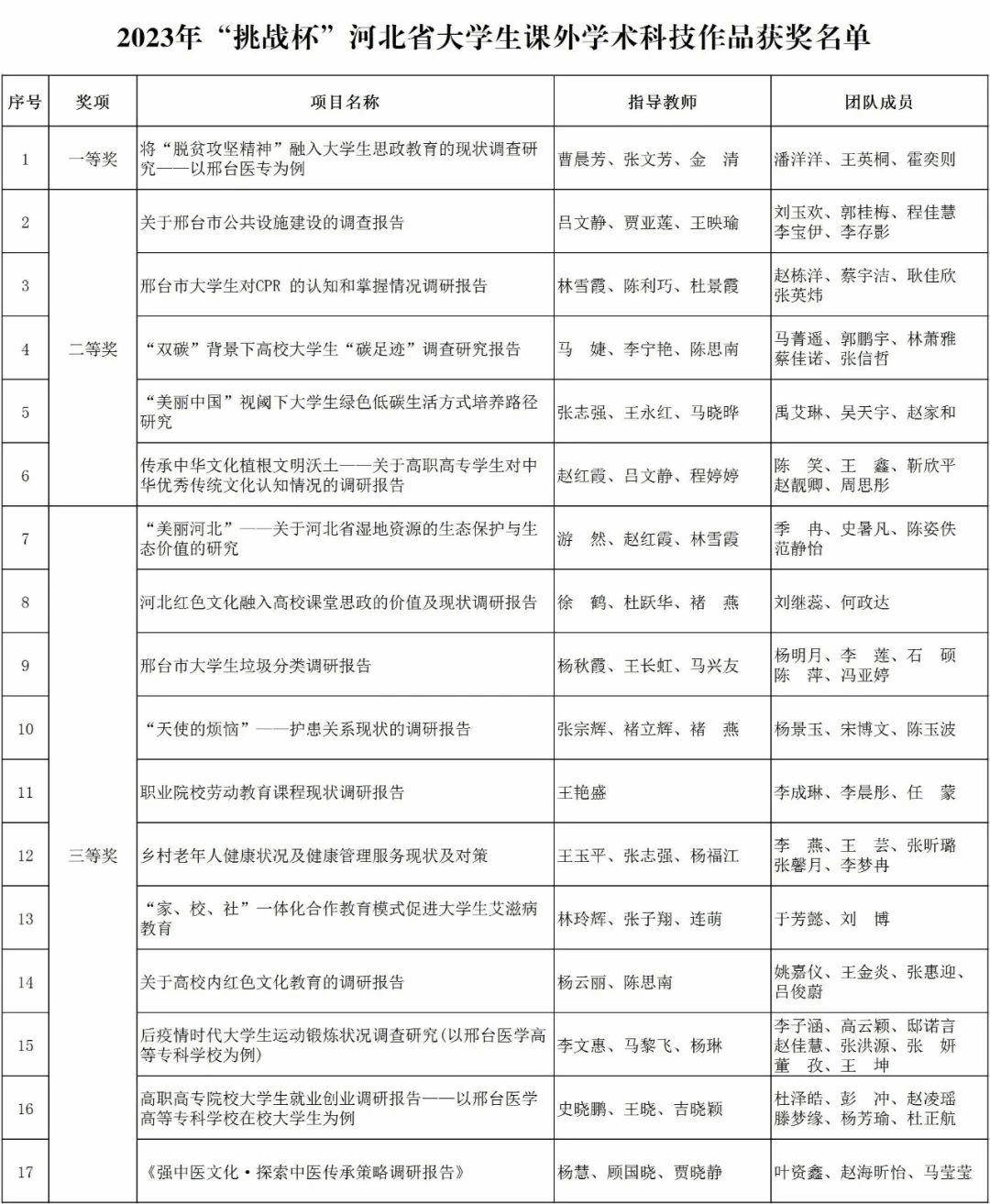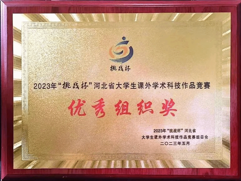 近日,由共青团河北省委联合河北省教育厅、河北省科学技术协会、河北省社会科学院、河北省学生联合会主办的2023年“挑战杯”河北省大学生课外学术科技作品竞赛成绩揭晓,我校参赛项目荣获一等奖1项、二等奖5项、三等奖11项,学校荣获优秀组织奖,刷新了学校在此项赛事上的历史最好成绩。