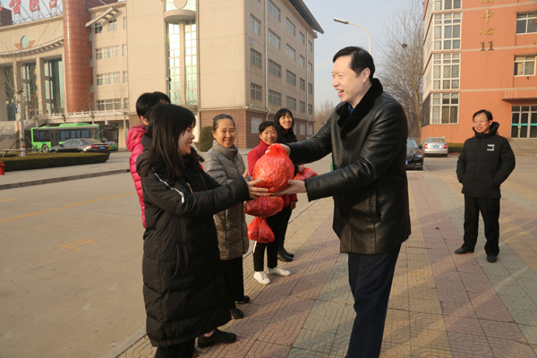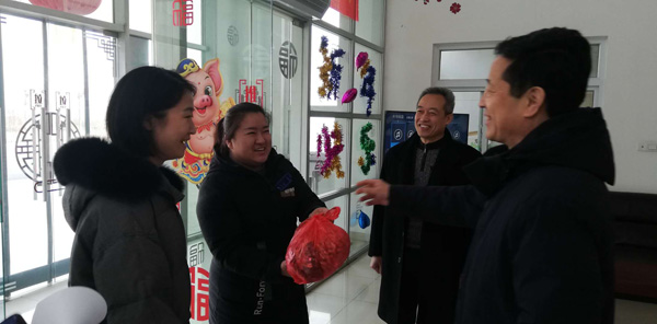 天寒人心暖,祝福寄深情。农历大年三十上午,在新春佳节即将来临之际,学校领导田德荣、李建广、杜成旭、李朝鹏、张志强分别看望了坚守在校本部、南校区、皇寺校区工作岗位上的干部职工,向他们送去节日的祝福和亲切的慰问。