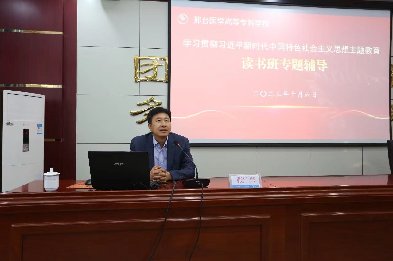 10月6日上午,学校主题教育办公室邀请河北师范大学马克思主义学院执行院长张广兴为读书班全体学员作专题辅导讲座。学校党委副书记杜成旭主持。