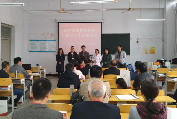 世界中医药学会联合会是国际性中医药学术组织,国家中医药管理局副局长担任主席,本次培训班是应一技之长专委会会长曹东义教授商请,学校领导批准后开办的。曹东义会长是河北中医药科学院副院长,河北中医学院硕士生导师,也是我校中医专业客座教授。在学术交流及考察活动中,曹教授对我校中医药教学资源及师资力量给予了很高评价。因此,选定我校承担本次一技之长专委会对会员进行执业资格考核公益性系列培训中的《中药学》课程。