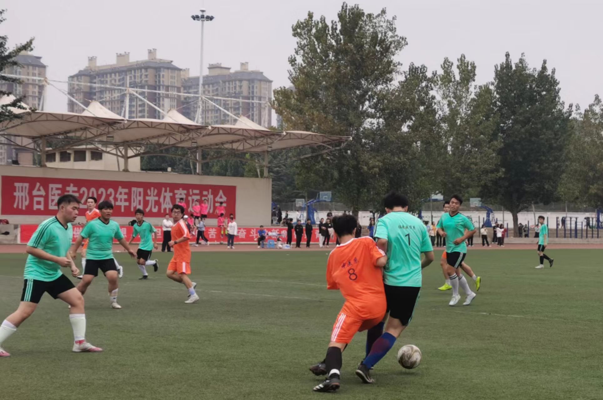 近日,我校2023年阳光体育运动会落下帷幕。此次运动会于10月17日开始,历时6周,共开展足球、篮球、拔河、疯狂8字、步调一致等9个比赛项目,两个校区1400余名学生参加。