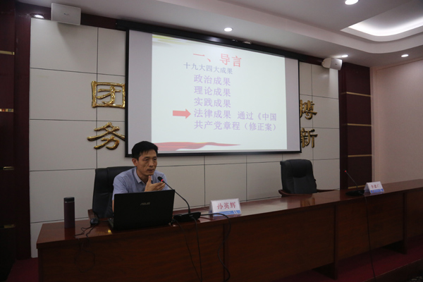 孙英辉教授结合现实案例和个人思考,详细阐述了以党章为核心,以准则、条例、规则、规定、办法、细则为主体的党内法规体系,解读了对从严治党的具体要求,分析了我们党面临着四大考验和四大危险,指明了只有严格党的规矩,增强规矩意识,才能推进党的建设新的伟大工程,取得伟大斗争胜利,进而实现伟大梦想。讲座加深了大家对全面贯彻落实党的十九大精神和全面从严治党的理解和认识,增强了廉洁自律、遵章守纪的意识和自觉。