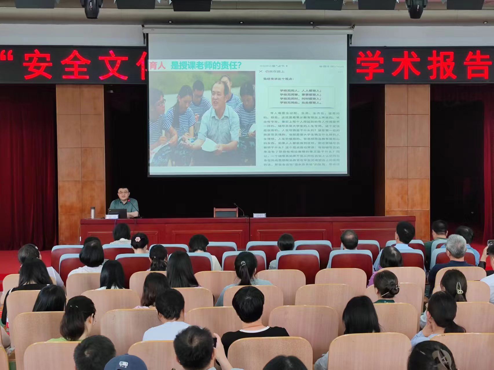 5月28日,我校在学术报告厅举办了“安全文化育人”专题讲座,学校党委委员、副校长赵国增主持,党委书记、校长李建广,党委委员、副校长林雪霞及各部门负责人、全体辅导员参加。
