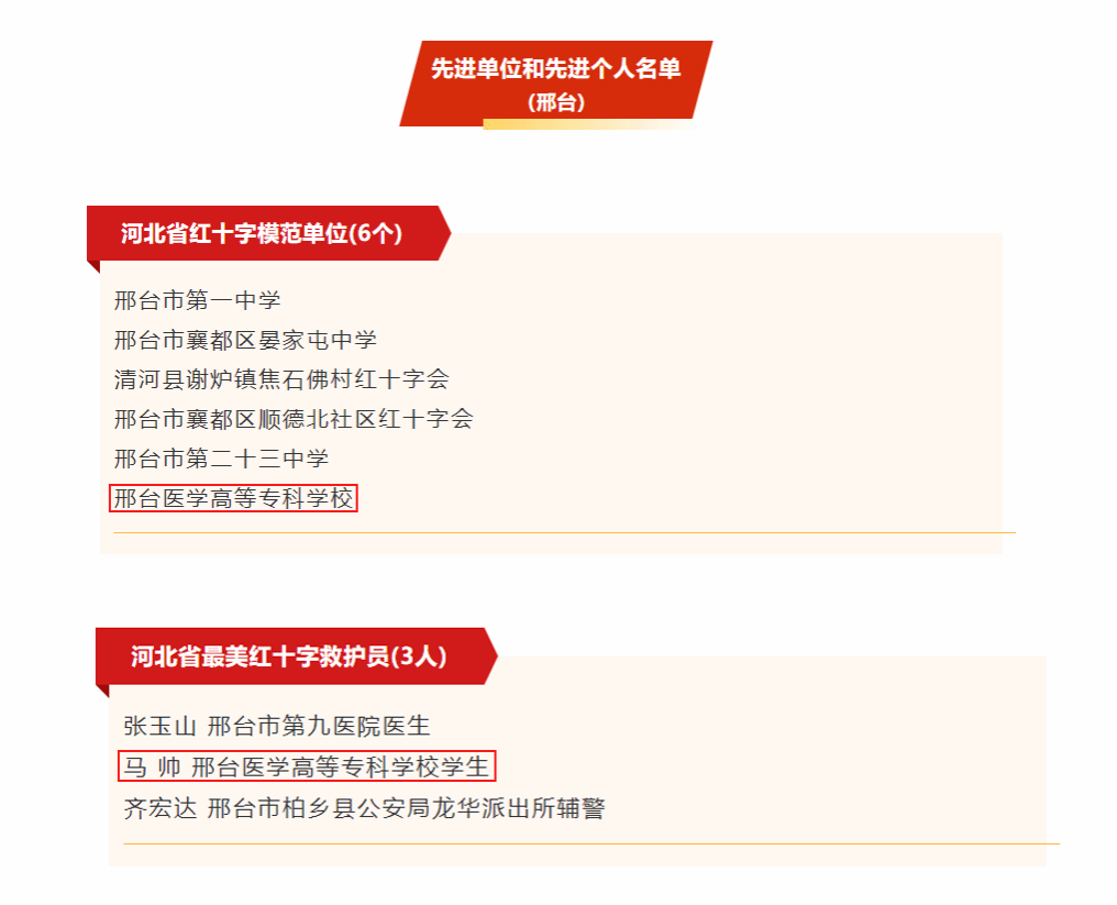 近日,省红十字会公布先进单位和先进个人名单,我校被授予“河北省红十字模范单位”称号,中医系学生马帅被评为“河北省最美红十字救护员”。