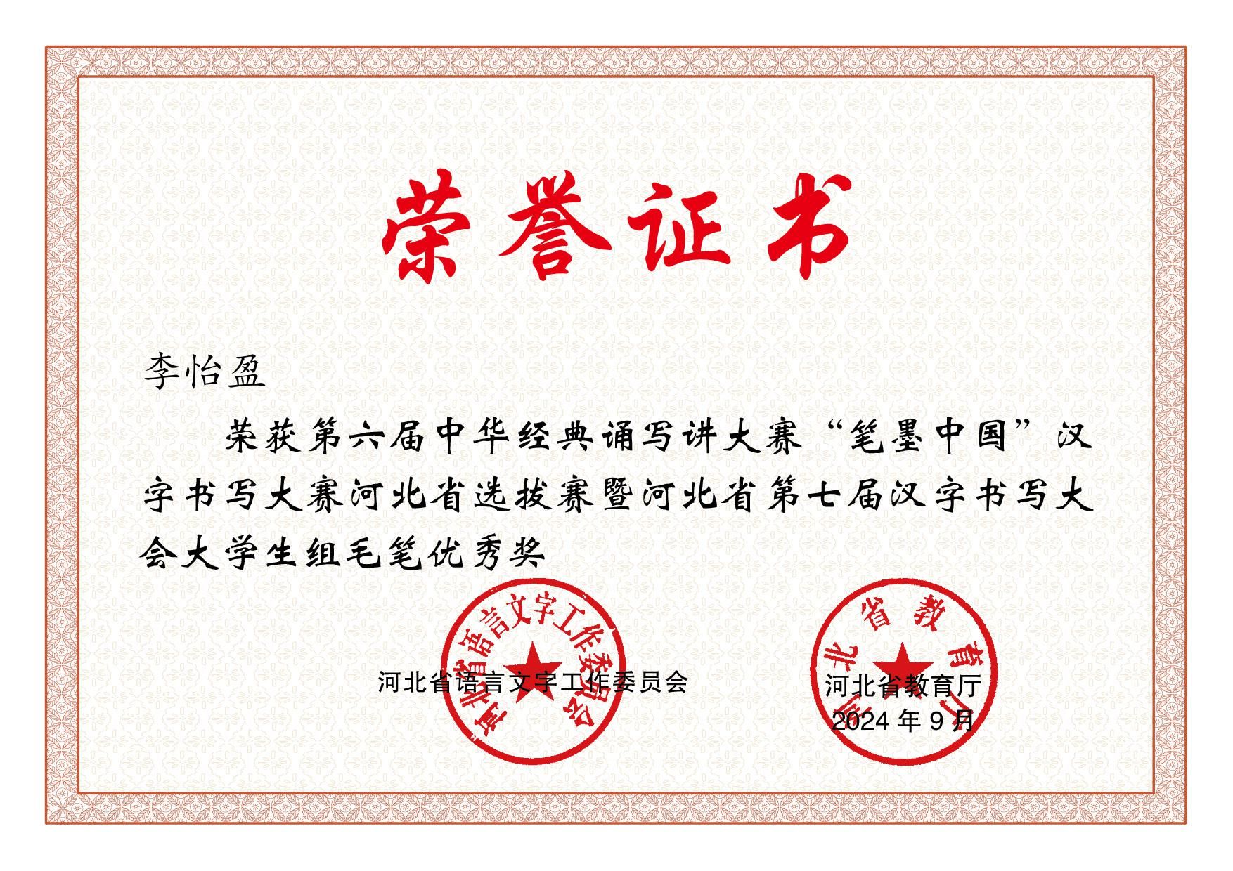 近日,由河北省语言文字工作委员会、河北省教育厅组织的第六届中华经典诵写讲大赛河北省选拔赛获奖名单揭晓,我校三项作品获奖。