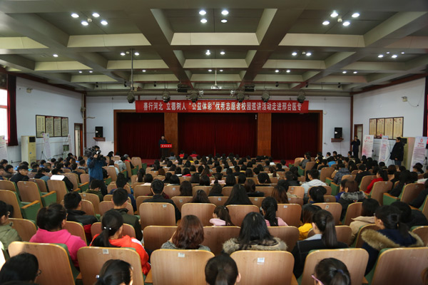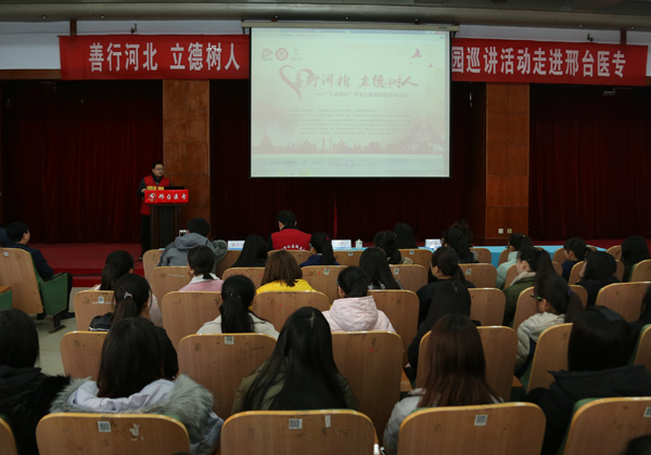 12月6日,邢台医专学术报告厅内座无虚席,省文明办、省教育厅、共青团河北省委、省志愿服务联合会等部门联合举办的“善行河北 立德树人——‘公益体彩’优秀志愿者校园巡讲活动”在我校隆重开讲。学校党委副书记李建广、邢台市文明办综合科科长刘娇出席本次活动,学校280余名师生聆听了报告会。活动由我校组宣处处长张永格主持。